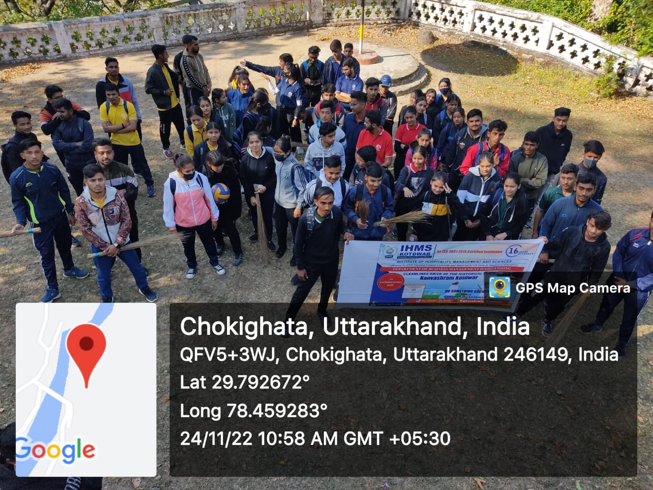 On 24th November 2022, the Department of Business Management of IHMS organized a CSR activity in “Cleanliness Drive of the Historical Place Kanvashram Kotdwar” in collaboration with “Do Something Society”, Kanvanagri Kotdwar. There were 4 mentors from the business management department, HOD Mr. Surendra Singh Jagwan, and faculties Mr.Pranjal Rawat, Mr. Pardeep Bhatt, and Ms. Mamta. Each mentor has been allotted 1 team and each team has been allotted a different location near Kanvashram.