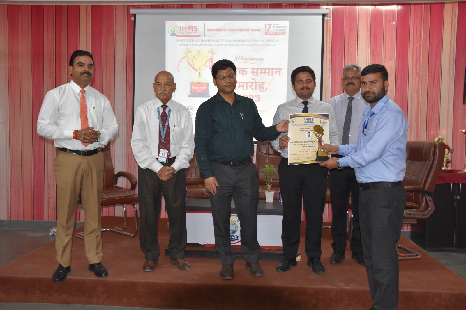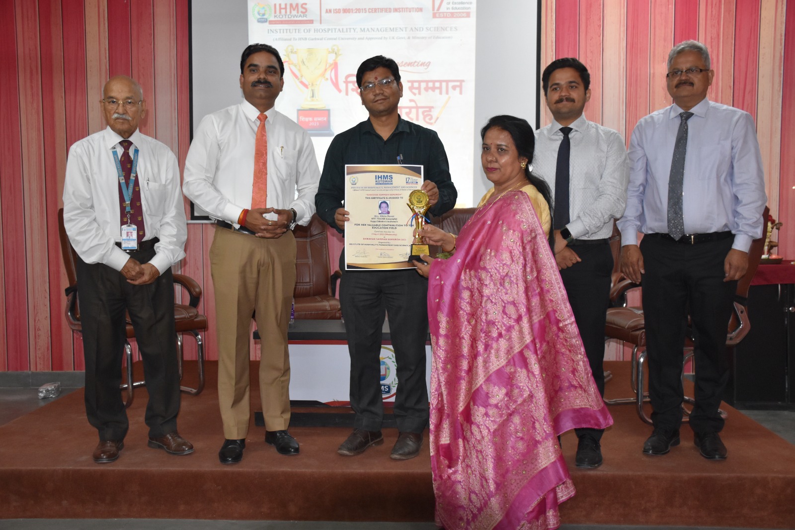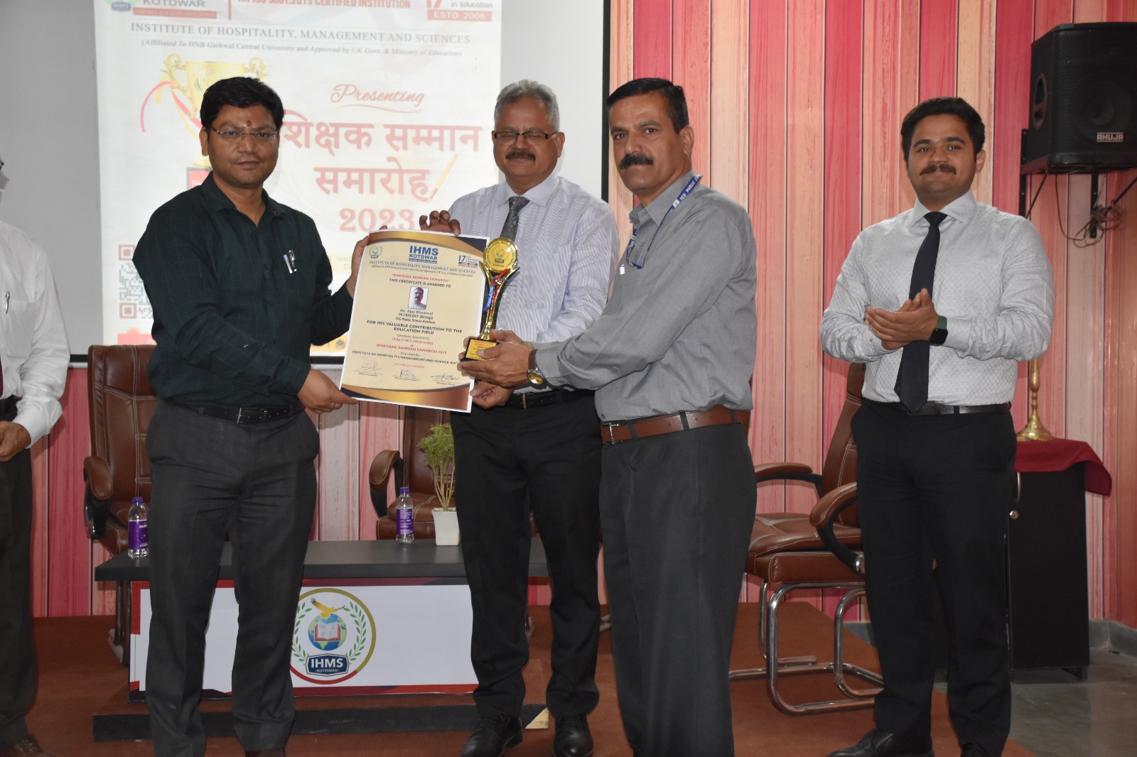 Teachers received recognition for their outstanding and significant contributions at the “Shikshak Samman Samaroh” event hosted by Institute of Hospitality, Management & Sciences – IHMS, Kotdwar on April 19, 2023. Mr. Pramod Kumar, SDM Kotdwar, was the program’s chief guest. T