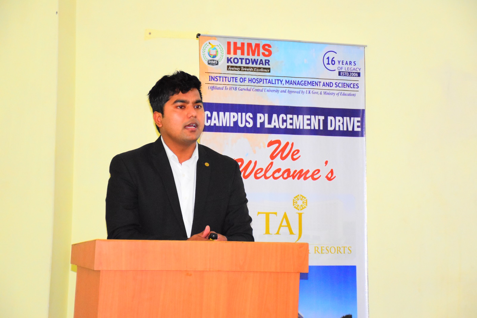 Taj Group of Hotels and Resorts organized a campus placement drive for HOT and HOMT programs across India at the Institute of Hospitality, Management & Sciences – IHMS, Kotdwar. Which included participation from Dehradun’s universities and institutions.