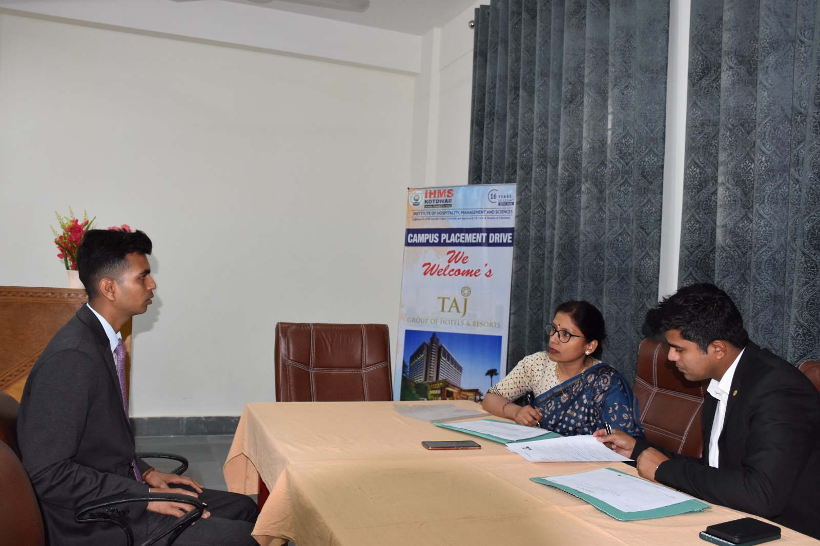 Taj Group of Hotels and Resorts organized a campus placement at IHMS